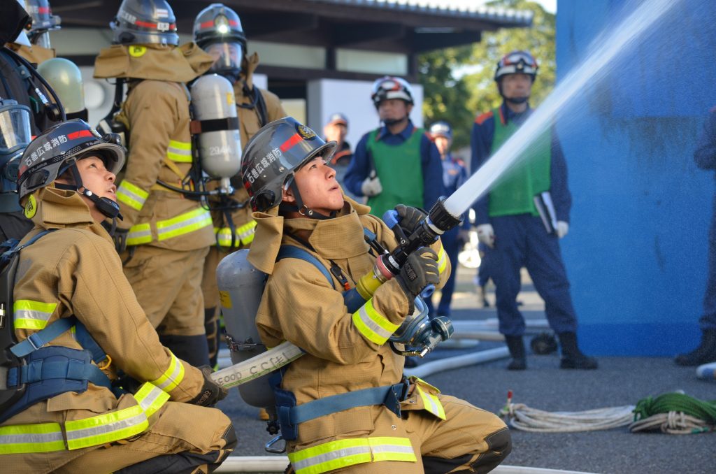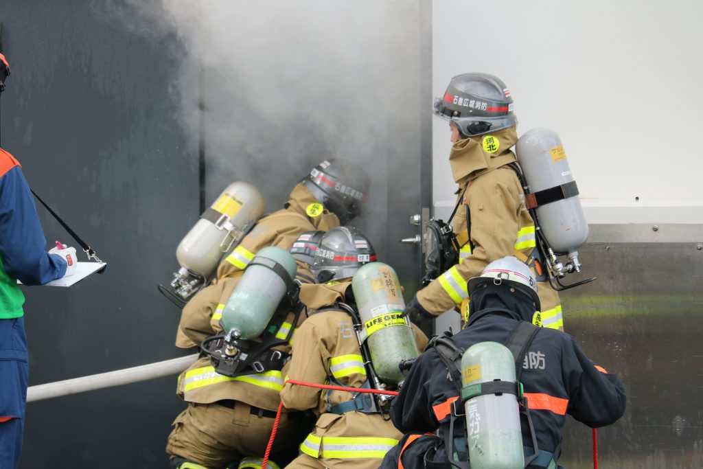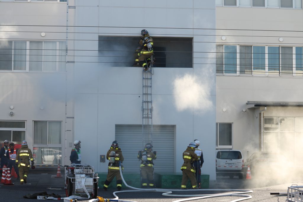 この訓練は火災を想定した実践的な訓練で、「円滑な部隊運用、安全・迅速・的確な火災防ぎょ隊形の形成及び要救助者の救助・救護活動」を主眼として、各指揮者、各部隊及び職員個々の災害対応能力向上を目的としています。