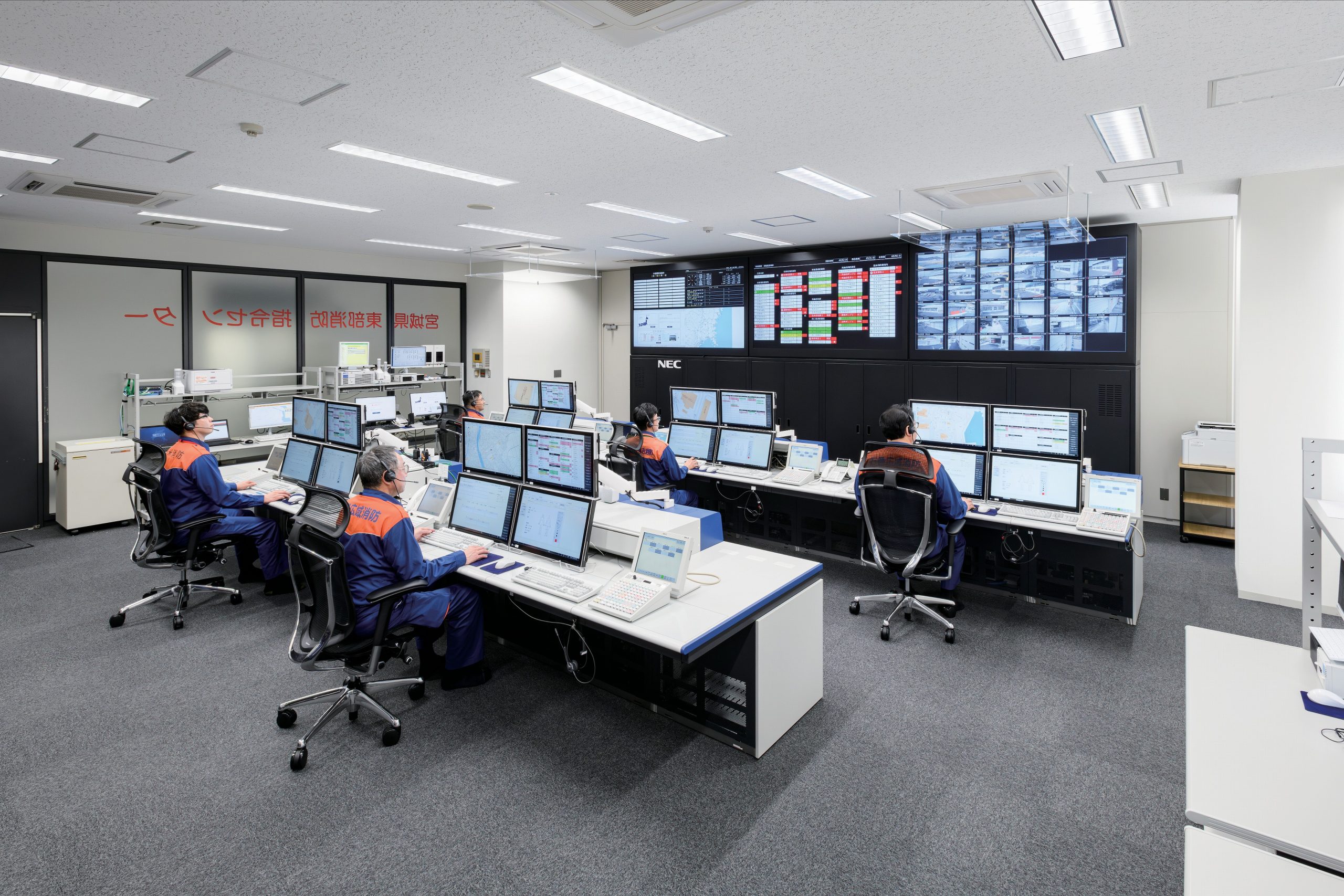 石巻市、東松島市、女川町、登米市、気仙沼市、南三陸町の4市2町の119番通報受付などの消防通信指令業務を一括管理し、迅速な応援出動や連携した災害対応機能を備え、地域住民の安全を支えています。